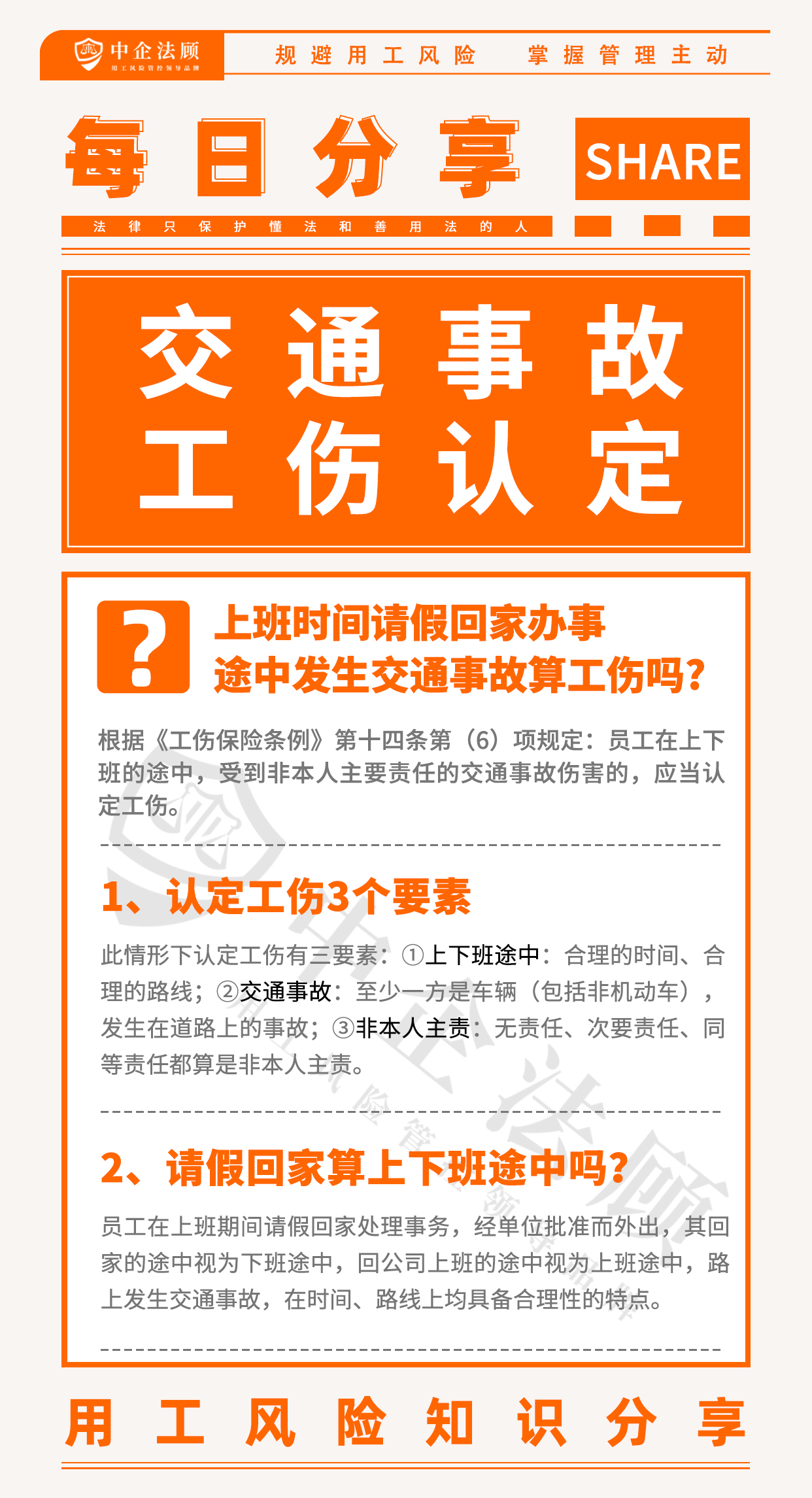 企业用工风险管控丨下班绕路回去发生交通事故死亡算工伤吗?